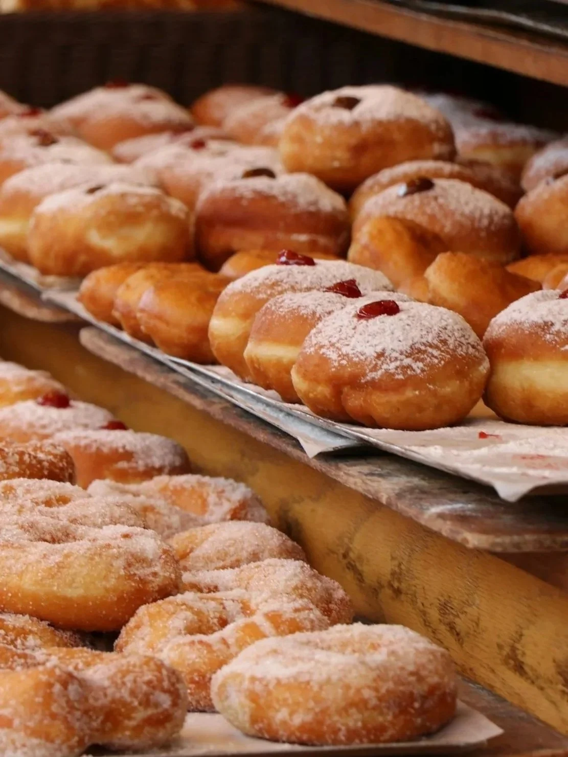 FILLED DOUGHNUT FLAVORS: STRAWBERRY JAM, RASPBERRY JAM, VANILLA OR CHOCOLATE CUSTARD, NUTELLA, CANNOLI, LEMON CREAM,
